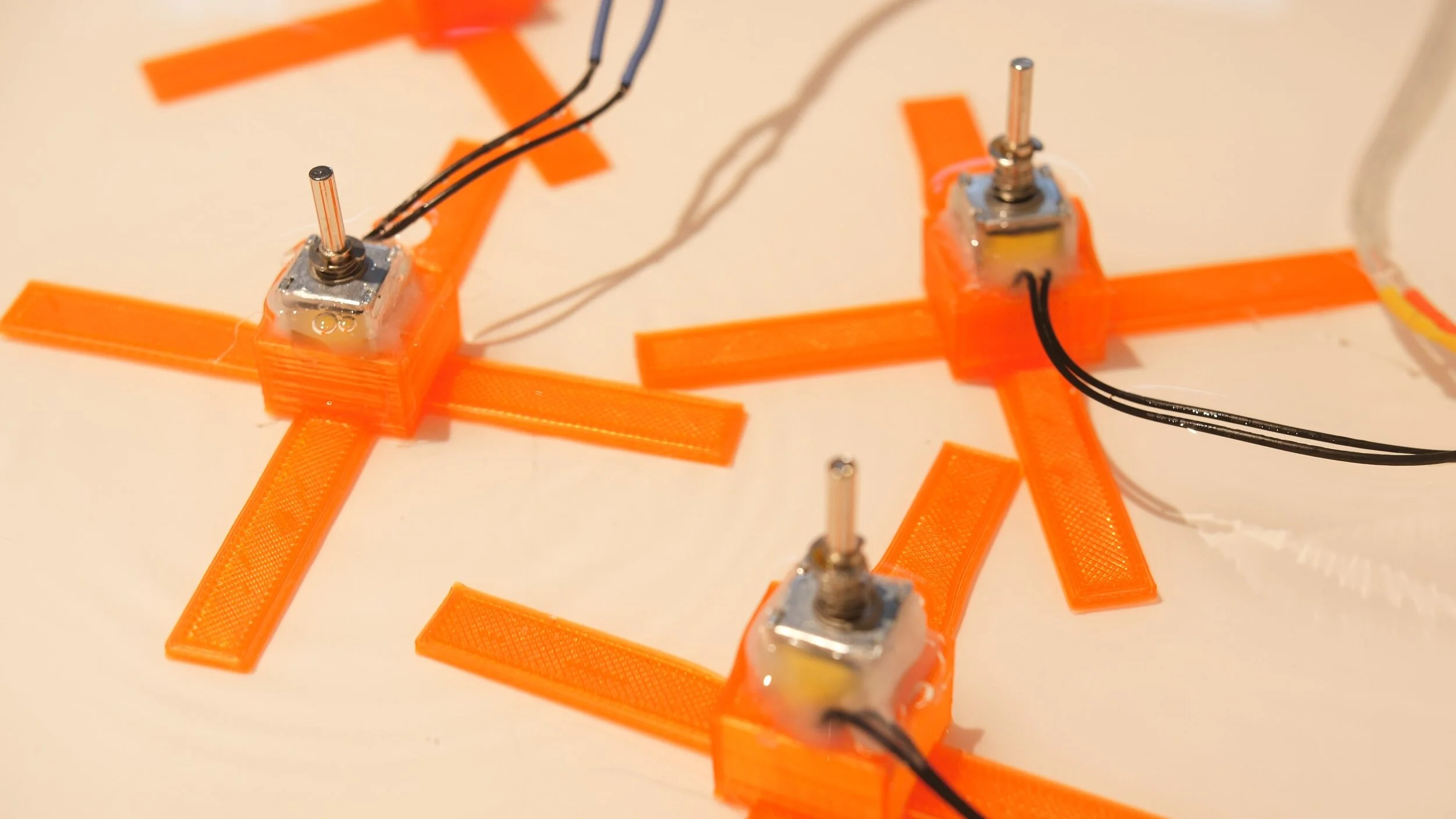 I started with some very basic experiments to make sure that the actuators I wanted to use were waterproof and luckily they were. I then experimented with which parts of the actuators needed to be in the water. I had intended to have the ‘splashers’ float on the water however a couple of tests quickly showed me that floating objects won’t stay in one place, and also that 3D prints are not buoyant or watertight. I therefore decided instead to sink them in the water.
